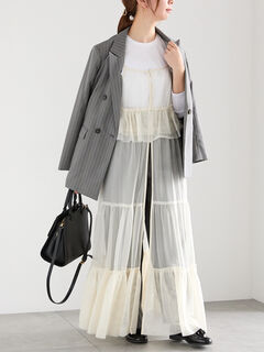 ワンピースやパンツスタイルにレイヤードしたコーディネートもおすすめです。