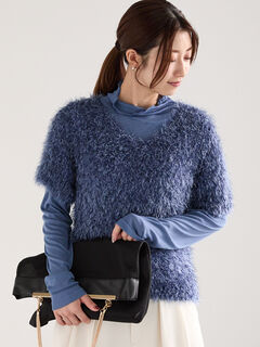 今季注目の半袖ニットプルオーバーとシアータートルインナーのセットアイテムです。インナーがセットになっているのでコーデに迷わずに着用頂けます。ボリューム感のあるフェザー&ポコポコ素材のニットは少し短めの丈感なので、ボリューム感のあるボトムスをあわせてもすっきり着こなして頂けます。セパレートしてそれぞれ単品使いもでき、着こなしの幅も一層広がるアイテムです。