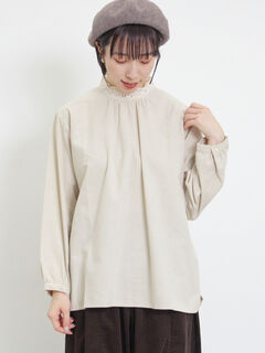 襟レースが愛らしさをプラスするナチュラルガーリーなブラウス。