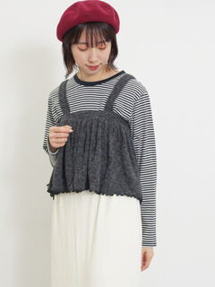 ふんわりとしたニットビスチェと長袖トップスの2点セット。