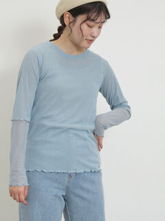 袖のシアー切り替えが抜け感のあるスタイリングを楽しめるカットソー。