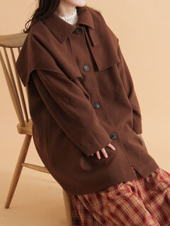 ひらりとしたケープがクラシカルなムードを演出するコート。