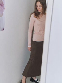 滑らかな肌触りのスウェード調生地で仕立てられたスカート。