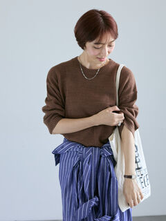 テープヤーンをハイゲージで編み立てた、爽やかな印象のクルーネックニット。