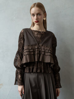 プリーツフリルを重ねたティアードデザインが可愛らしいジレ。