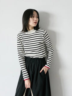 首元はハイネック仕様で季節感を添えつつ、ほどよいフィット感が着こなしを引き締めます。
