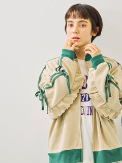 後ろヨークのフリルデザインが甘さをプラスするトラックジャケット。