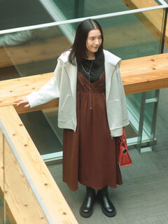 裾に向かってふんわりと広がるシルエットで、動くたびに自然な揺らめきを演出します。