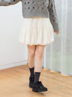 軽やかな素材感と裾のふくらみがスタイルにアクセントを加えます。