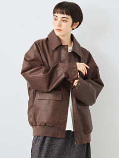 滑らかな質感が魅力のフェイクレザーブルゾン。