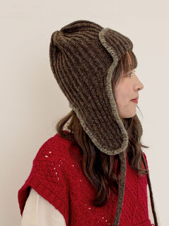 あたたかみのあるリブ編みが魅力のニットフライトキャップ。