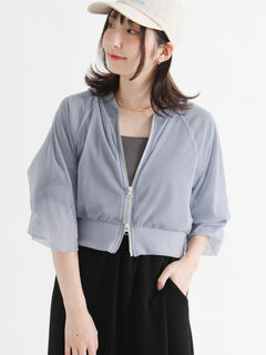 透け感のあるチュール素材がレイヤードされたブルゾン。