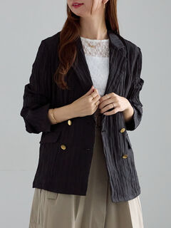 光沢感があることでシワ加工であってもカジュアルになりすぎずにキレイめに着れる1枚。