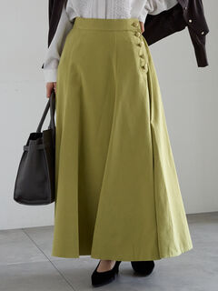 タックのないシンプルなフレアのシルエットが腰回りもすっきりと見せてくれます。