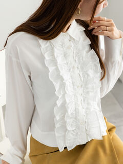 ハンサムな印象のシャツに可愛らしいフリルを施したブラウス。