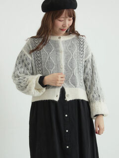 モヘヤ混ケーブル柄シアーニットカーディガン