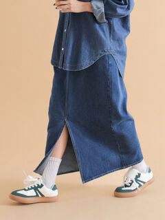 すとんとしたナローシルエットが脚のラインをきれいに魅せるデニムスカート。