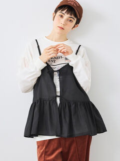 裾に向かってふんわりと広がるシルエットが可愛らしいキャミビスチェ。