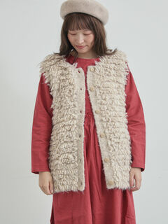 去年人気だったウール混ボアニットベストを、今年はループ編みで作りました。