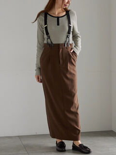 真っ直ぐなペンシルシルエットにこだわったハイウエストスカート。取り外し可能なサスペンダー付きで、気分やシーンに合わせて使い分けを楽しめます。背面に施されたバックスリットが抜け感をプラス。ウエスト仕様などマニッシュなディテールで、スカートスタイルもハンサムな印象に着こなせるアイテム。