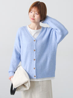 ウールを含むふんわりとした手触りが暖かい着心地を実現するカーディガン。