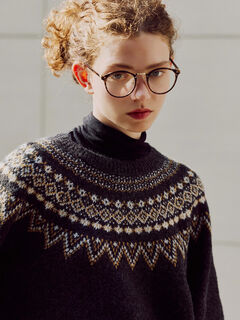 シーズンムードを高める求心柄のデザインが施されたニット。