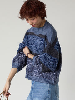 表情豊かな編地で仕上げたマルチデザインボーダーニット。