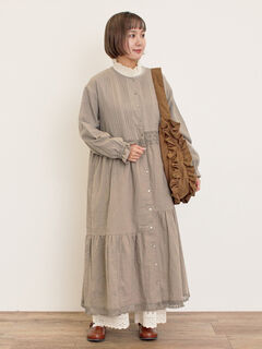 レースパッチワークのデザインが華やかな印象を与えるワンピース。