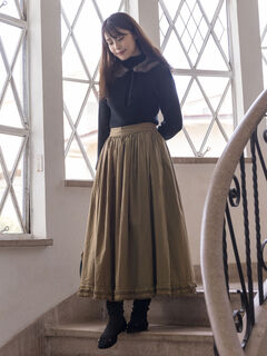 裾にあしらったフリルが華やかなアクセントになるゆべしコラボのスカート。