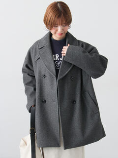 程よくハリのあるウールライク素材を使用したミドル丈のPコート。