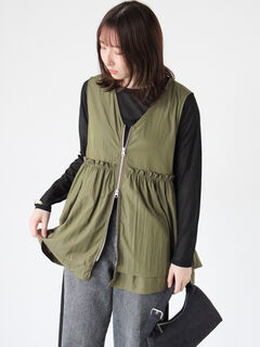 ふんわりと広がるペプラムシルエットのデザインで、スタイリングにやわらかい印象を与えます。