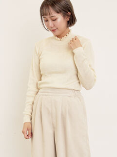 【マシンウォッシャブル】リブフリルタートルネックニット