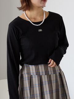 胸元のワンポイント刺しゅうがさりげないアクセントになるクルーネックカットソー。