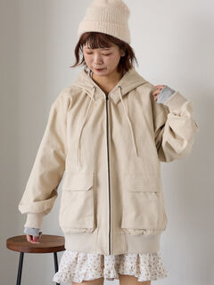フードが付いており、カジュアルなスタイリングを楽しめます。