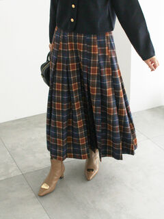 チェックアソートロングプリーツスカート