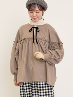 くしゅっとしたギャザー切り替えが可愛らしさを演出するプルオーバー。