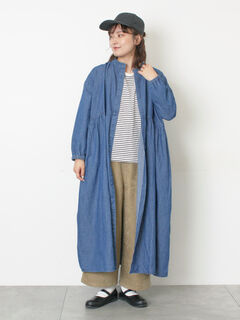 上品なバンドカラーとデニム素材を掛け合わせた、大人カジュアルにちょうどいいワンピース。