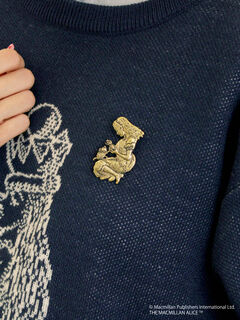 アリスはゴールド、猫はシルバーで表現。物語のワンシーンを切り取ったような繊細なデザインで、上品な輝きを放ちます。