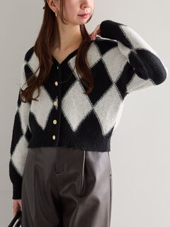 アーガイルジャガードVネックカーディガン