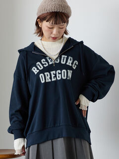 フロントの英字ロゴがヴィンテージライクな印象を与えるパーカー。