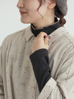 ニットやワンピースのインに合わせるだけで表情が生まれ、首元まで暖かく着られるのも嬉しいポイント。