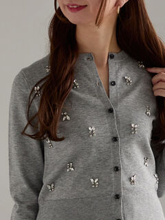 フロントのビジュー調が上品で煌びやかな輝きを放つカーディガン。