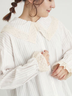 レースのビッグ襟が着映えする前後2WAY仕様のブラウス。