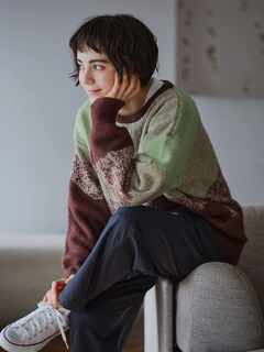 • グラデーションニットプルオーバー(ベージュ/ブラウン/ネイビー)|SM2(エスエムツー)通販 モデル身長:157cm 着用サイズ:F