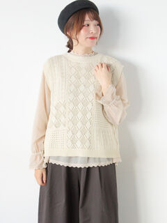 前後2WAYパッチワークニットベスト