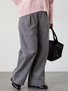 コーデュロイのやわらかな風合いと、タック入りデザインがポイントのワイドパンツ。
