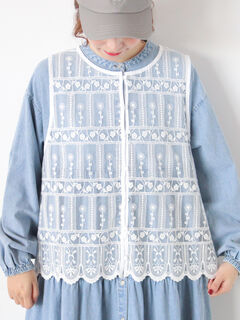裾のスカラップレースが印象的なベスト。