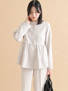 ウエスト切替のペプラムデザインが、自然な立体感と女性らしさを演出するジャケット。