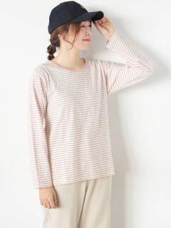 表情のあるスラブ天竺素材を使用したシンプルで使い勝手の良いインナートップス。