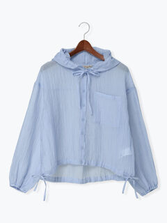 シアー裾ドロストフードシャツ